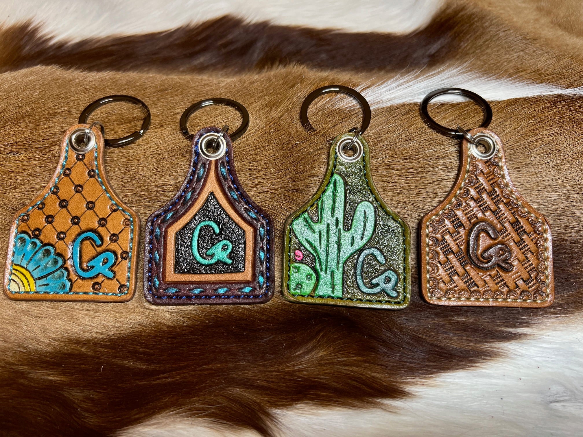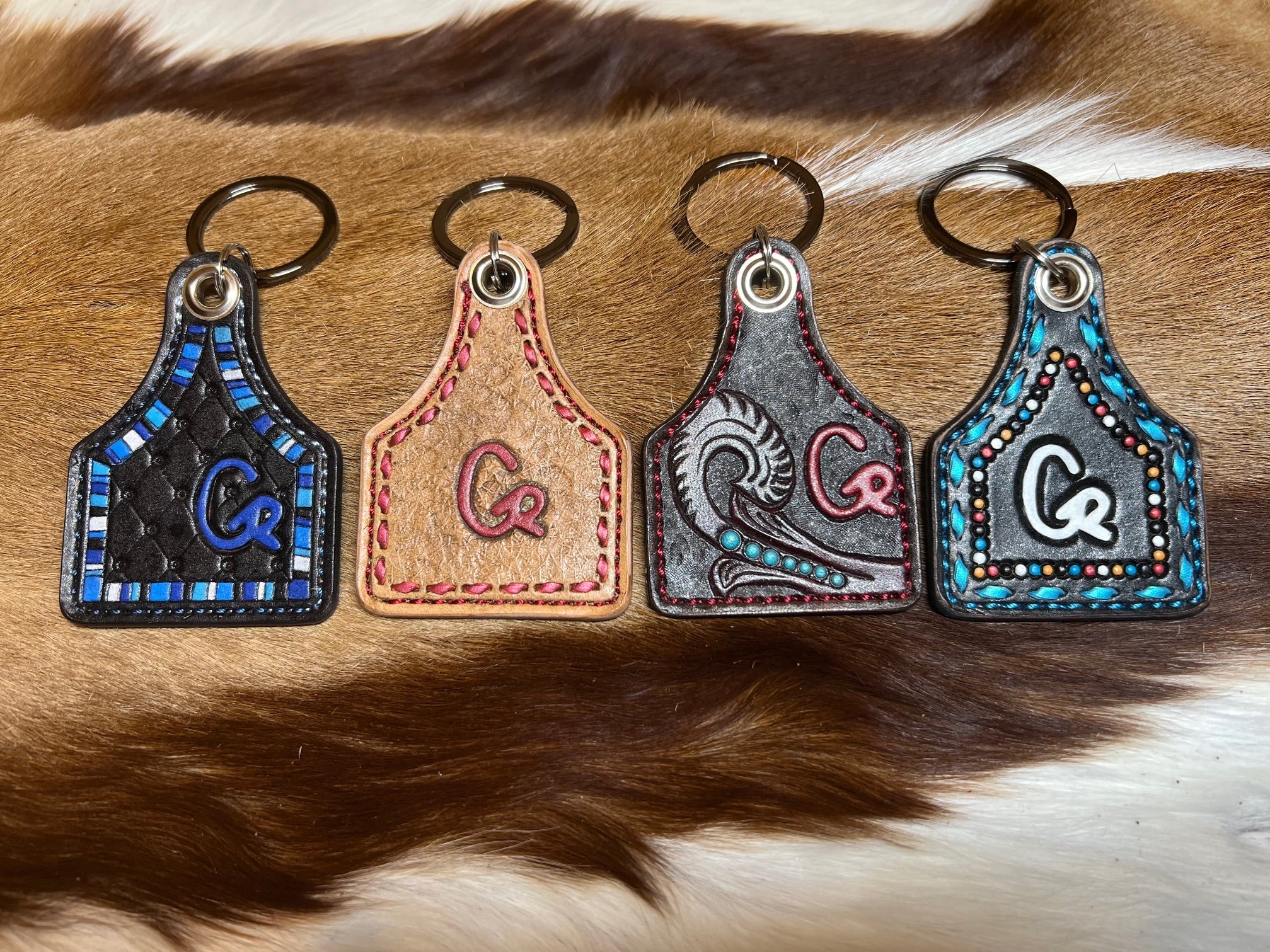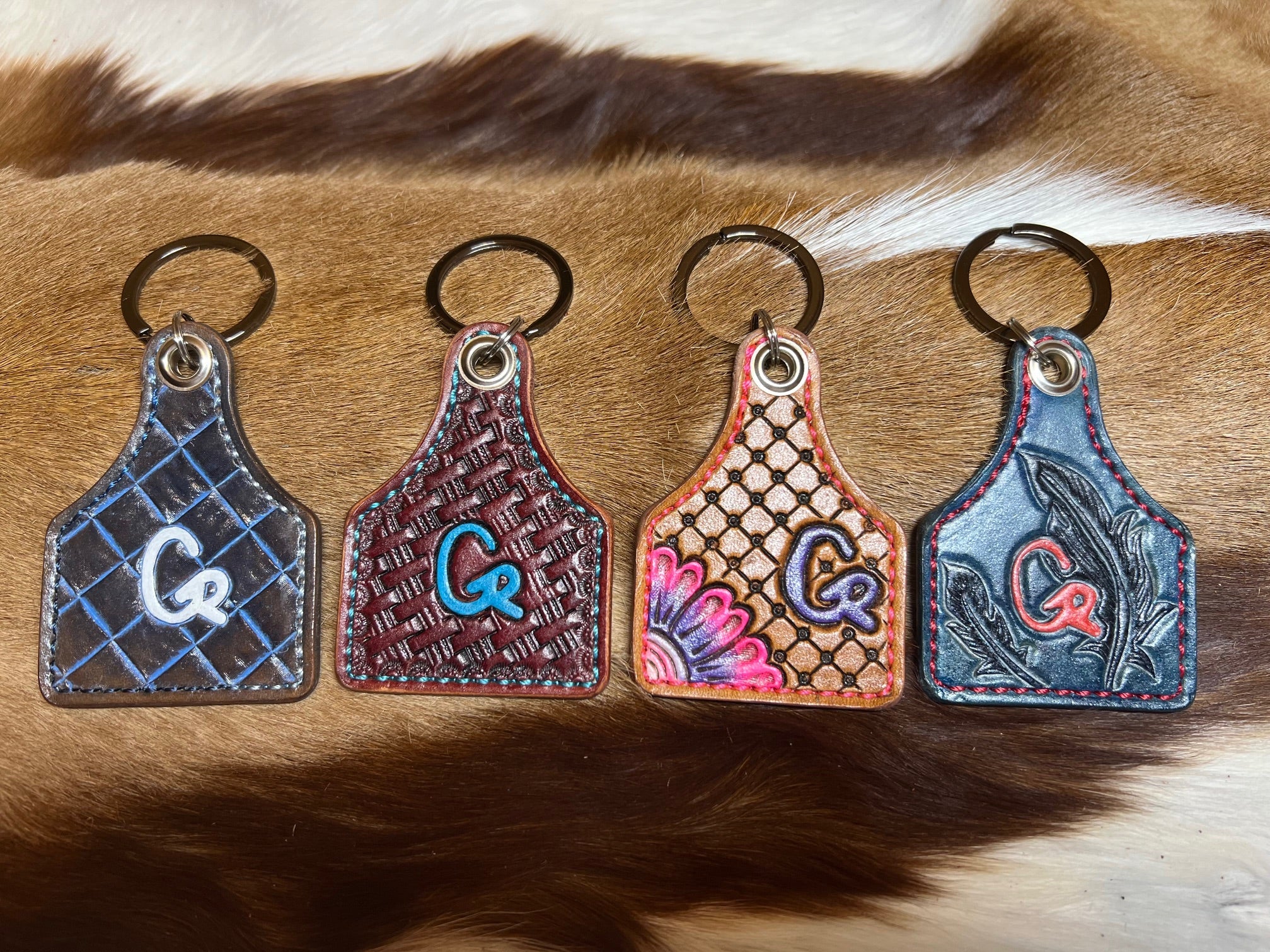 Show off your EXQUISITE STYLE with your family brand or company logo on a leather cow tag key chain! These little gems measures 2.5” x 3.5” and are completely customizable…down to the thread color and are made with Hermann Oak Leather!!