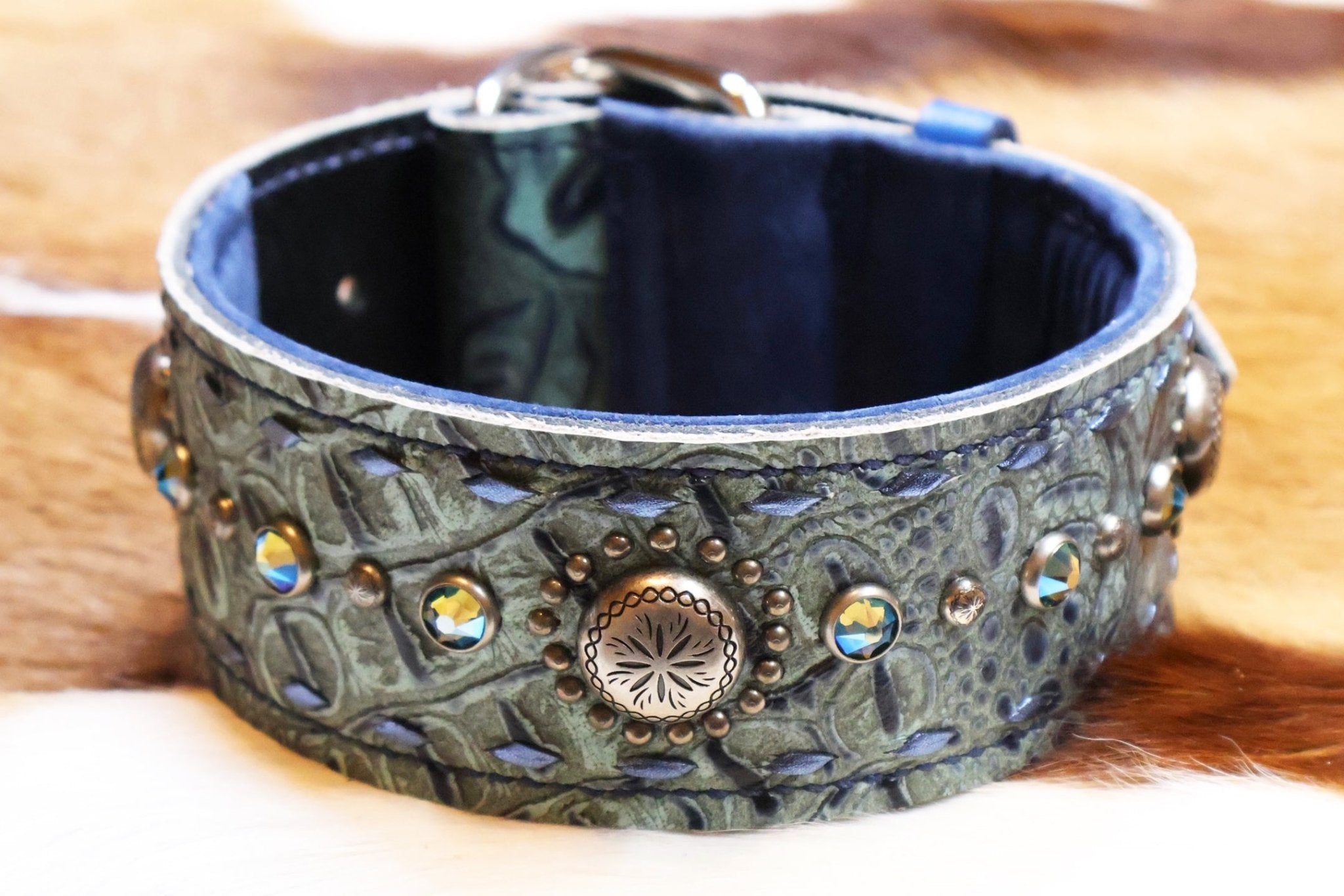 Blue Crocodile, Aurora Borealis Studded Leather Dog Collar