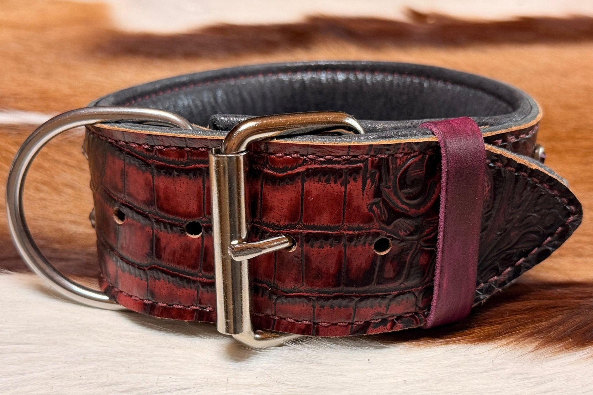 Red Crocodile, Red Studded Leather Dog Collar