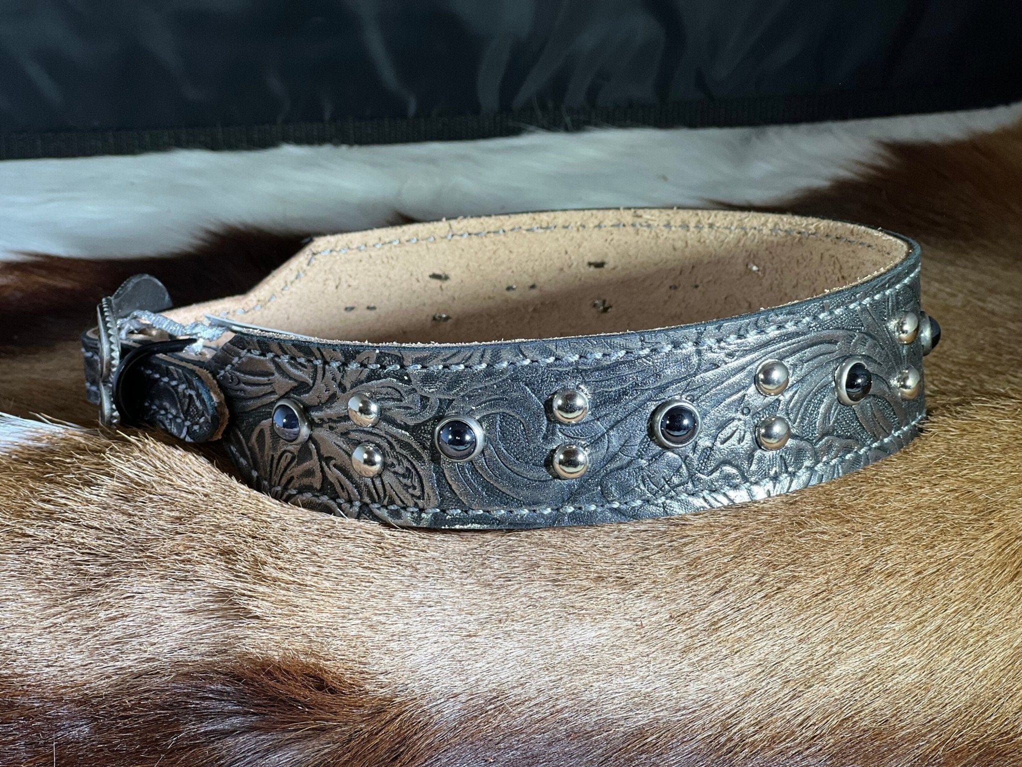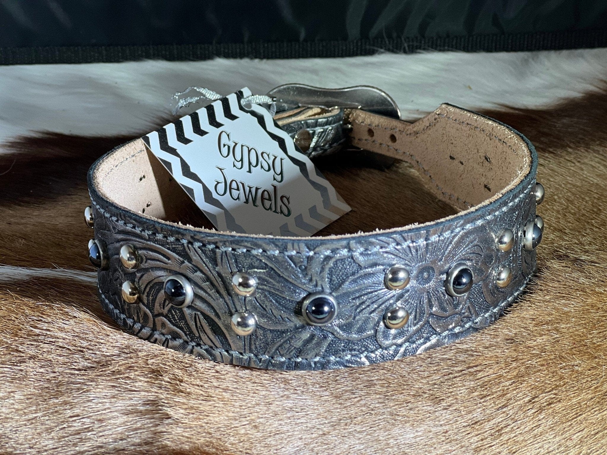 Collar width: 1.5" with 5/8" silver cart buckle