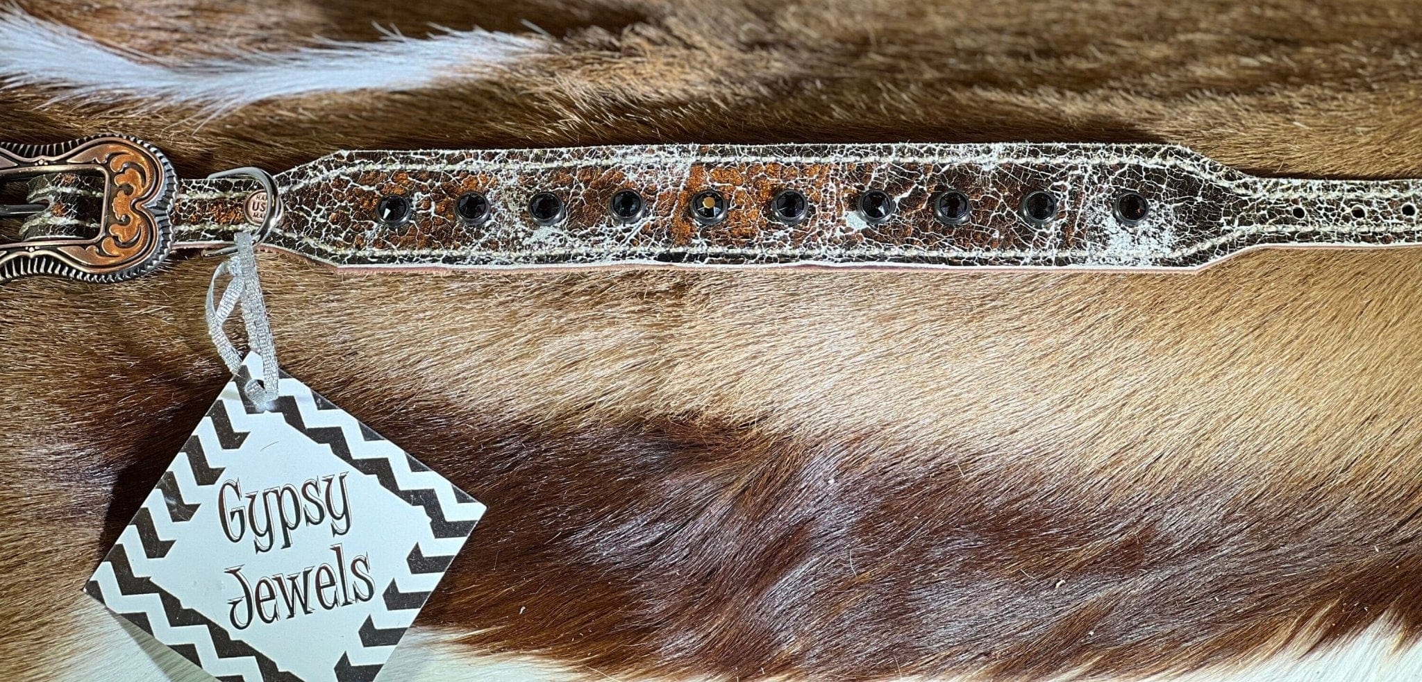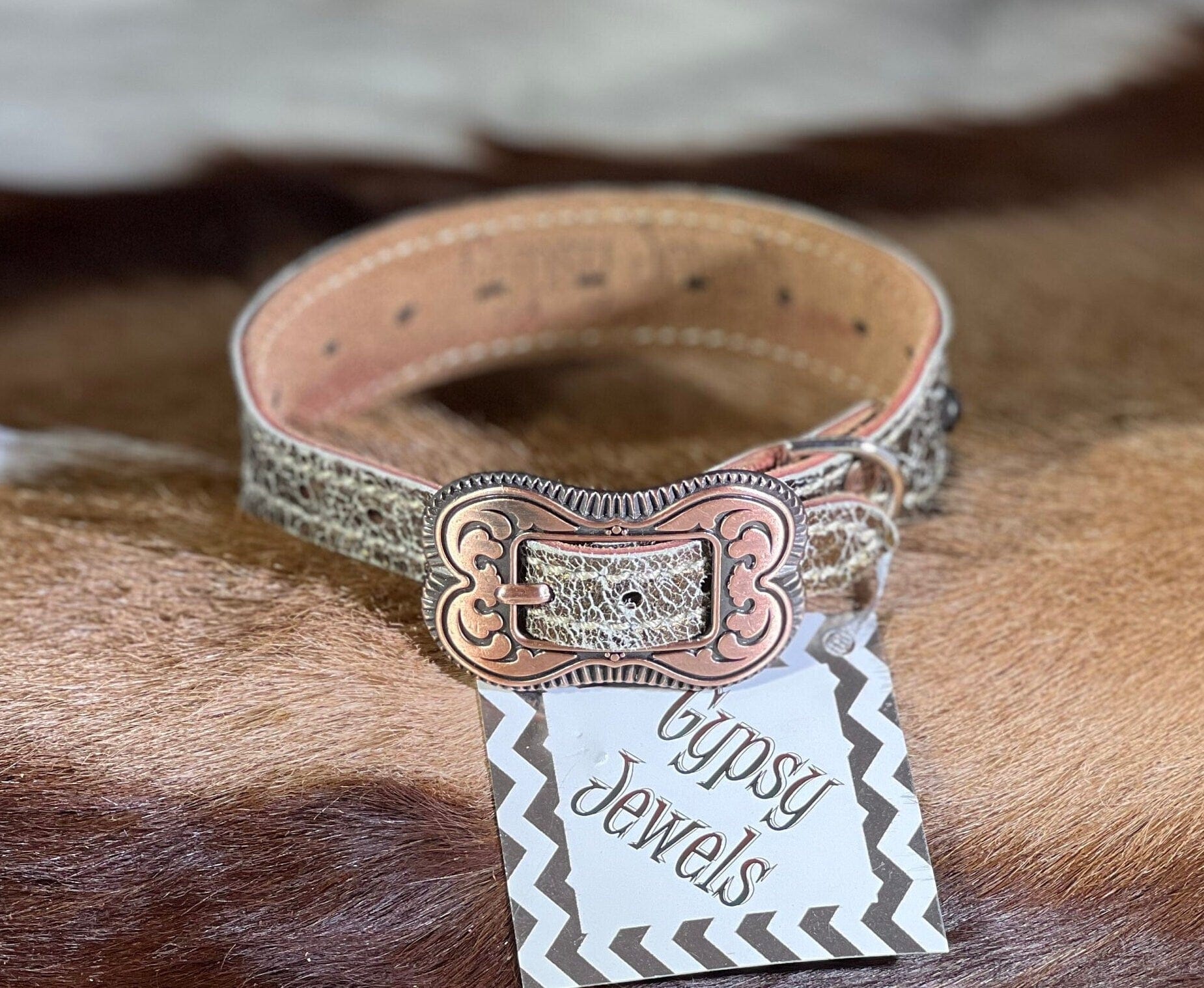 - Collar Width: 1-1/8" with 5/8" antique copper cart buckle